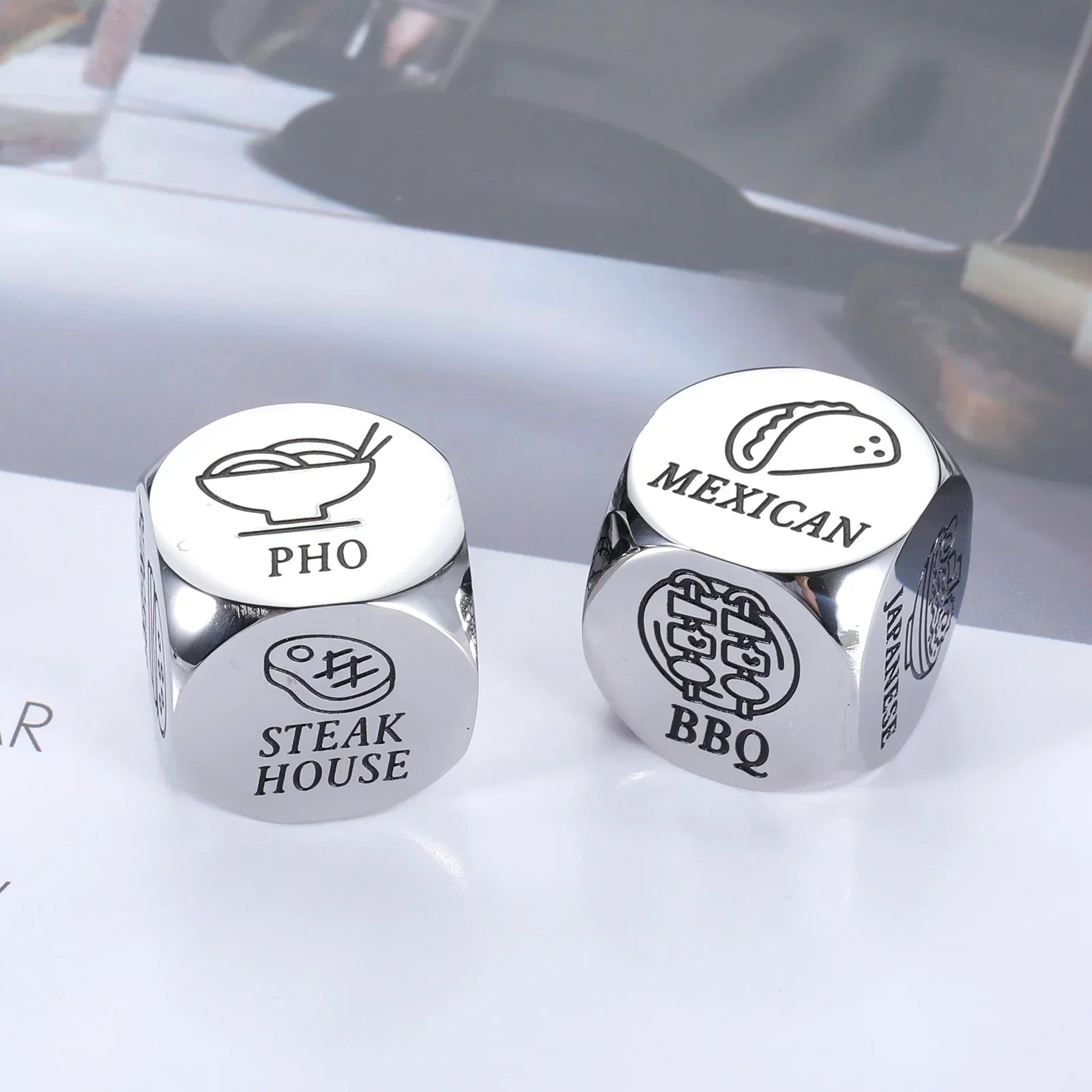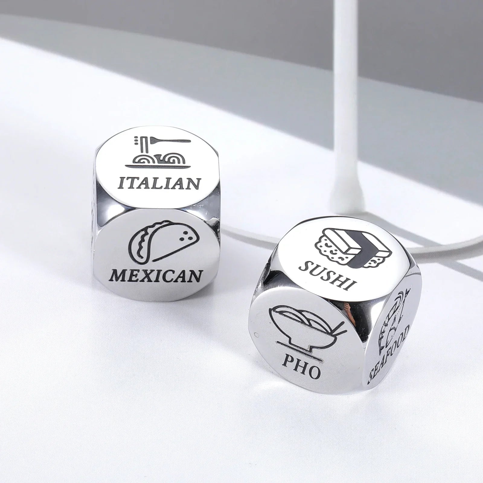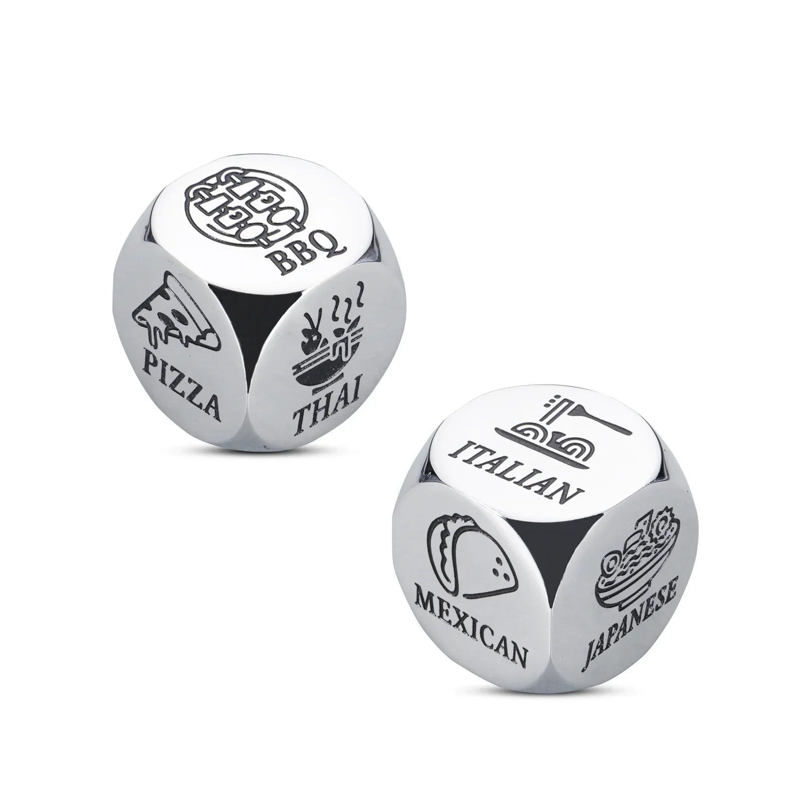 Indecisive about dinner? Let these Food Decision Dice take the guesswork out of mealtime! 🎲🍕🍣🌮 Crafted from durable stainless steel in a sleek silver finish, these 16mm dice add a fun twist to your dining choices. Whether it's pizza, sushi, or tacos, simply roll the dice and let fate pick your meal for you. Each set includes 2 dice, making it the perfect way to add excitement and surprise to your next meal! 🎲🍽️