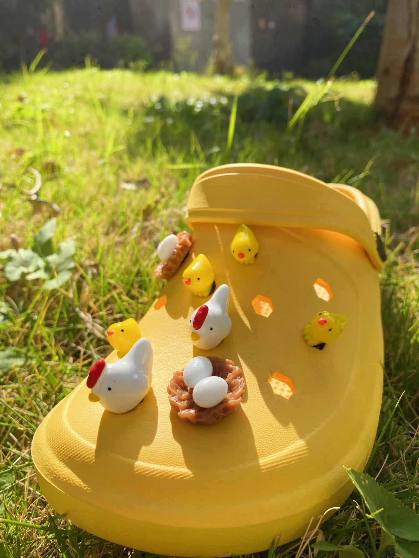 Customize your Crocs by placing the chicken charms in different holes 🐓➡️👟. Create unique poses and bring your shoes to life with endless possibilities!