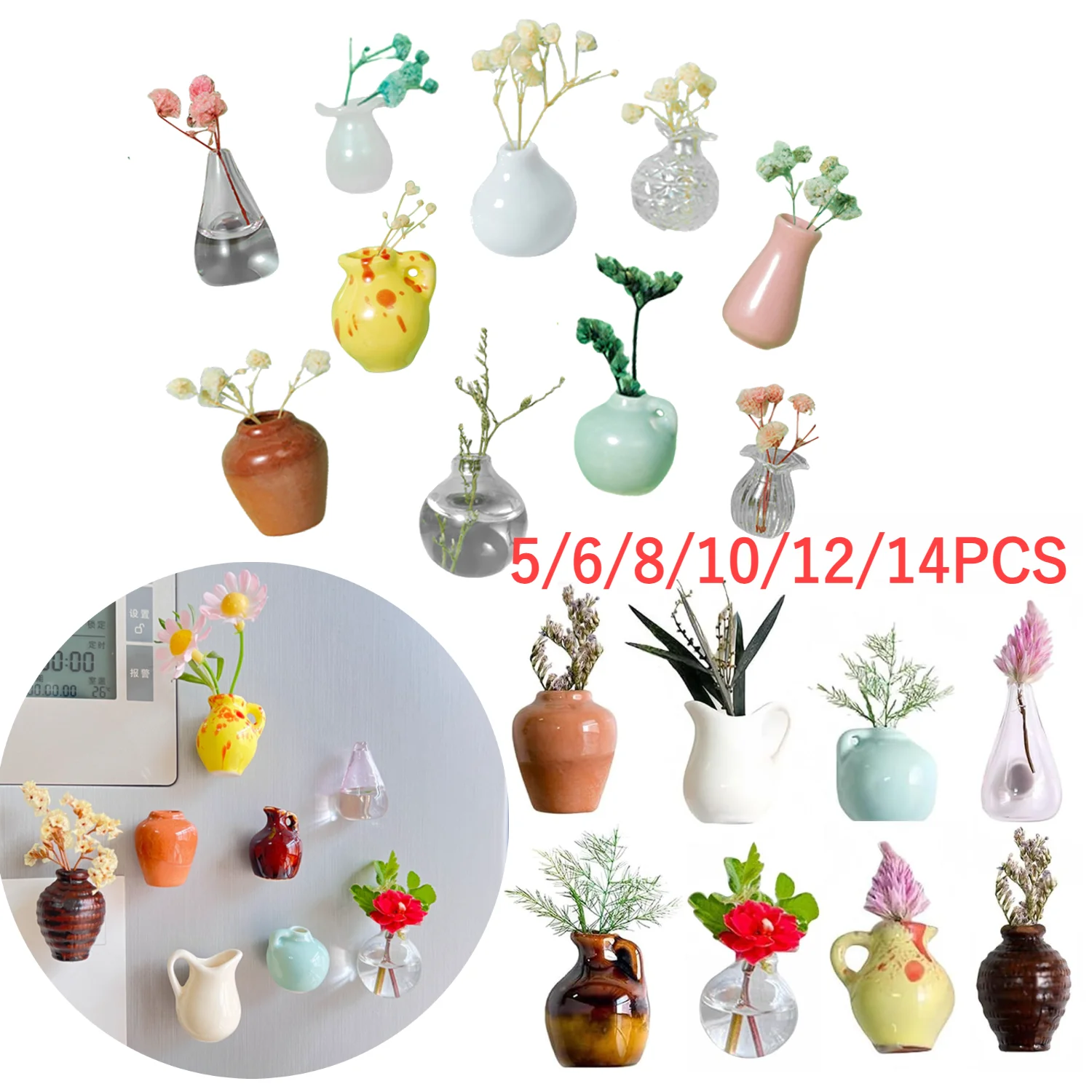 Mini Vase Magnets DIY Ceramics Vase Fridge Magnet Lightweight Creative Message Sticker for Air Conditioners Fridge House